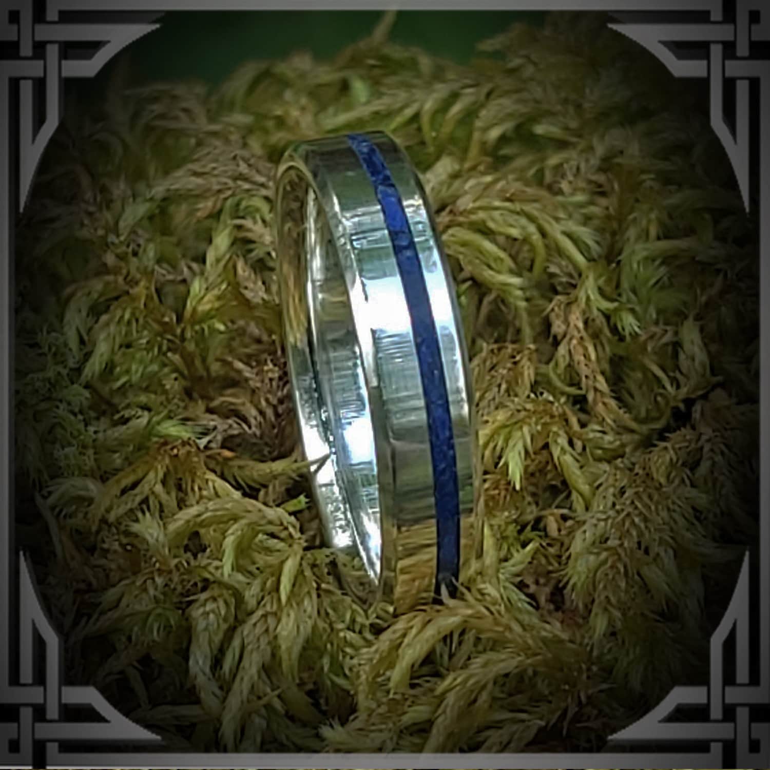 This ring is hand cast by us from 925 Sterling Silver with a Thin Groove Lapis Lazuli Stone Inlay.