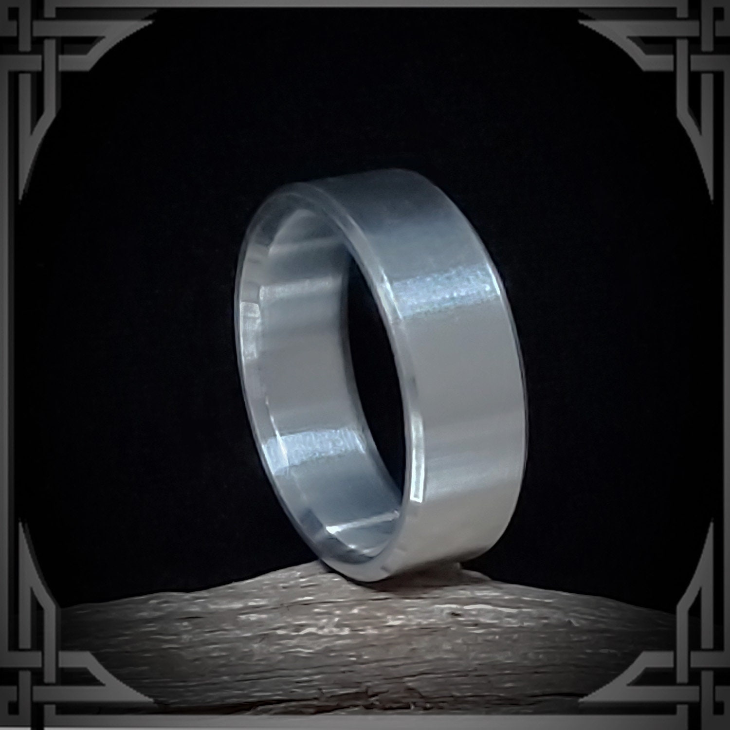 This ring is solid - hand cast by us in Canada from 925 Sterling Silver. Then Hand Machined, Beveled and Finished with Precision.