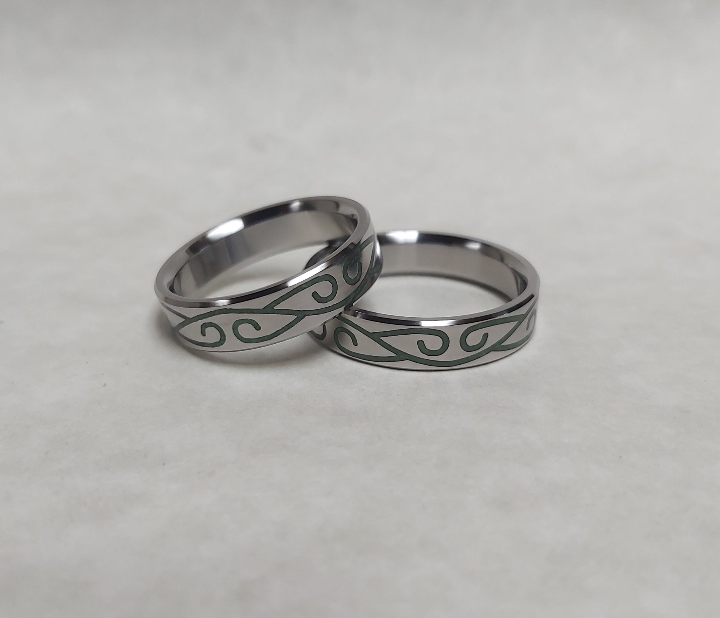 This Beautiful ring is made from Titanium with a Green Jade Green Jade Maori Koru Pattern Stone Inlay.