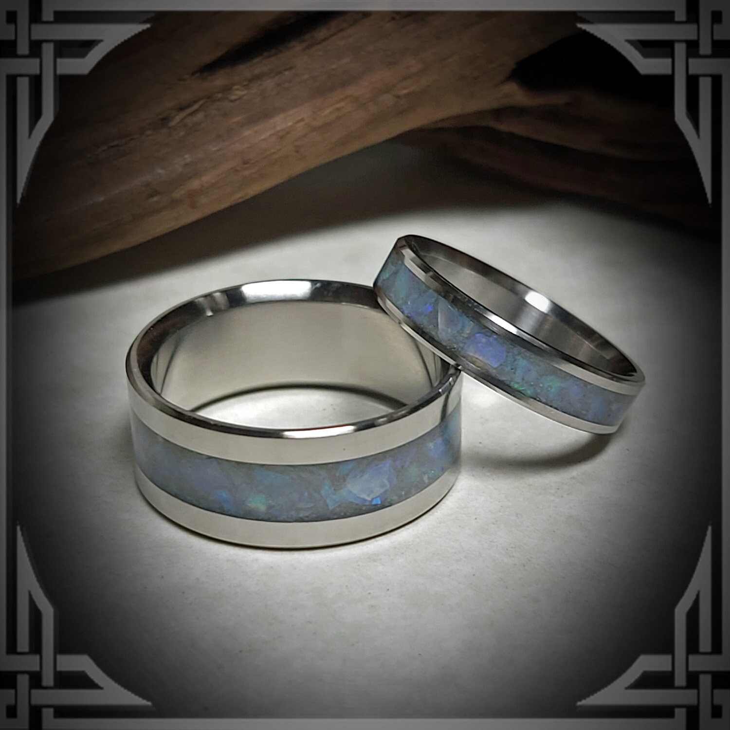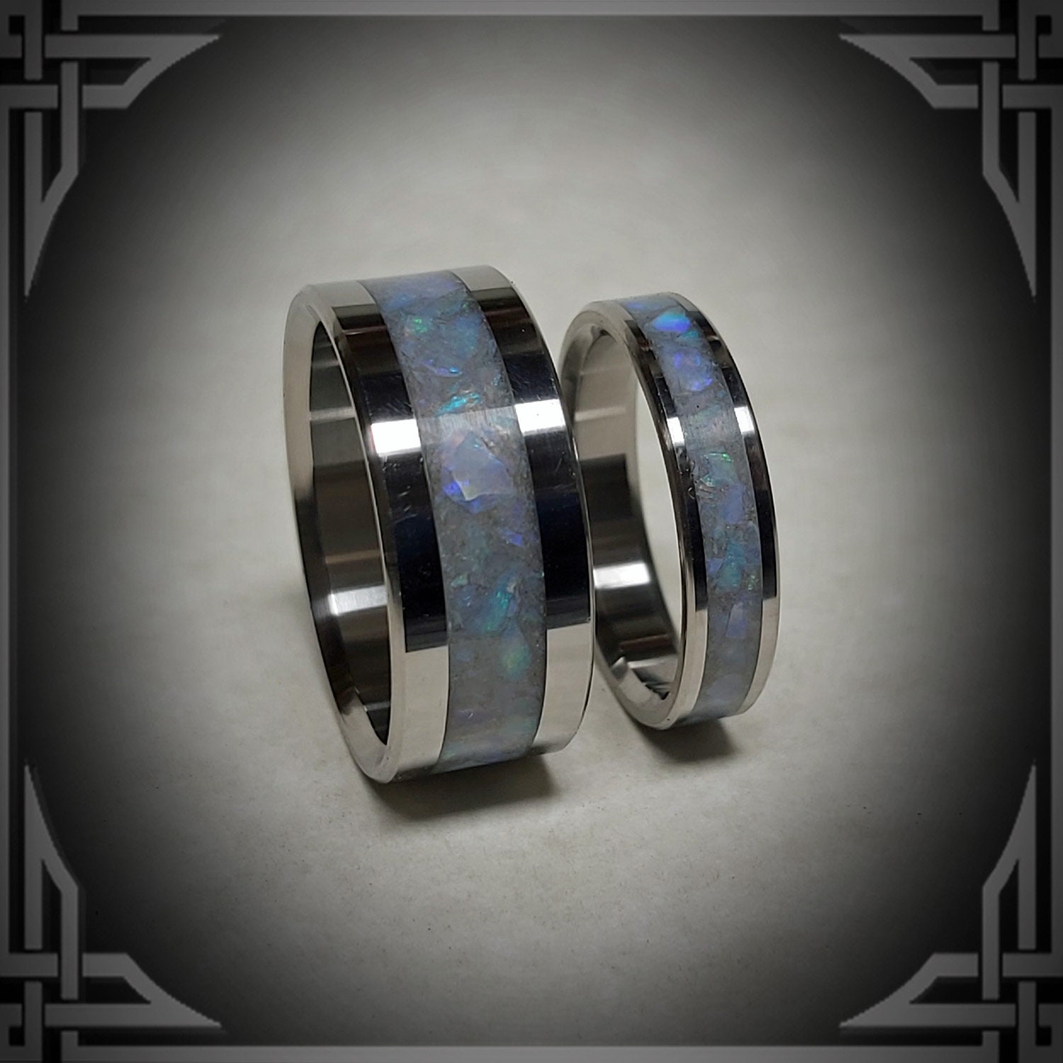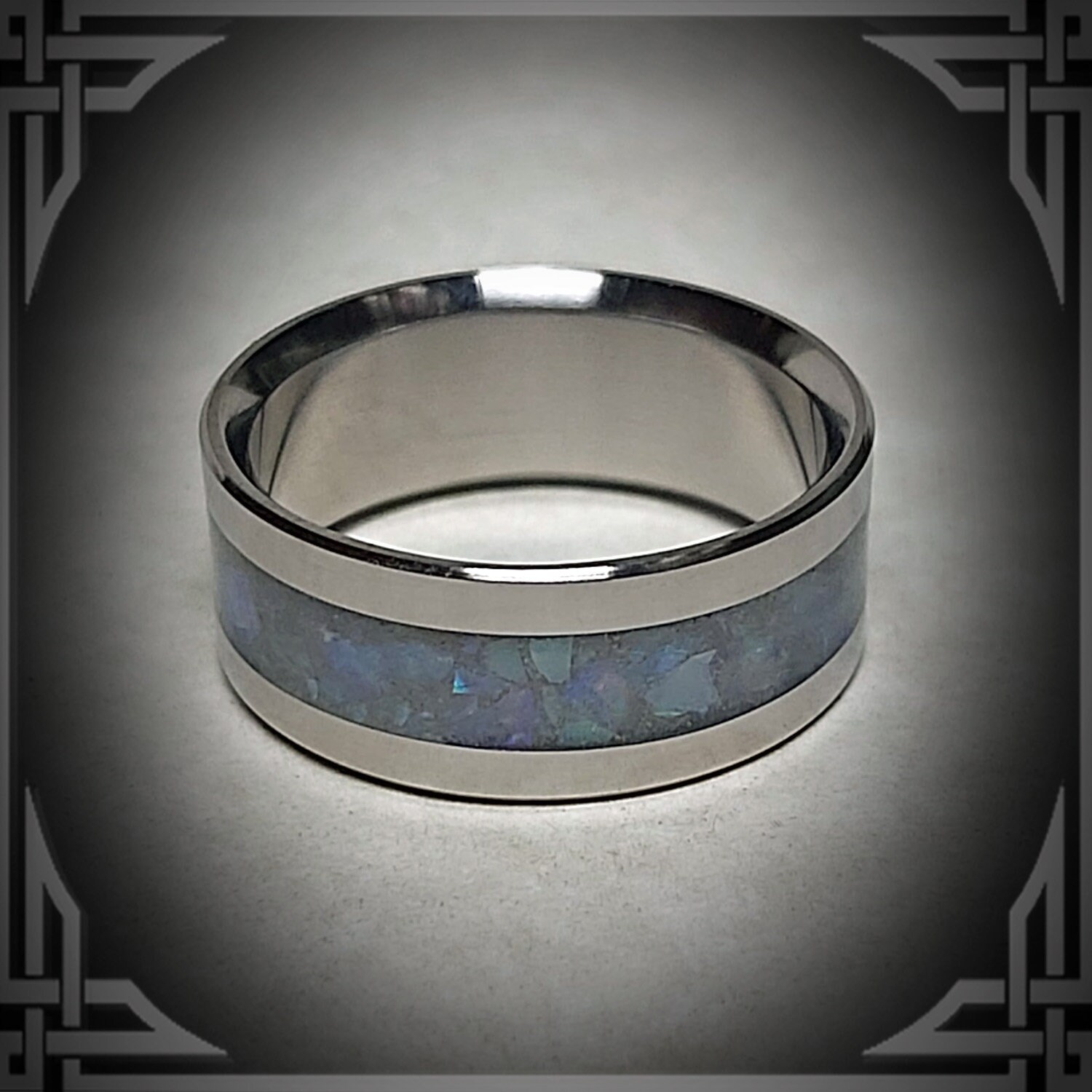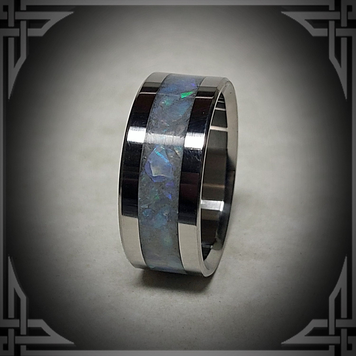 This Beautiful Ring is handmade in Canada from Titanium with an Australian Opal Stone Inlay. (medium grove width)