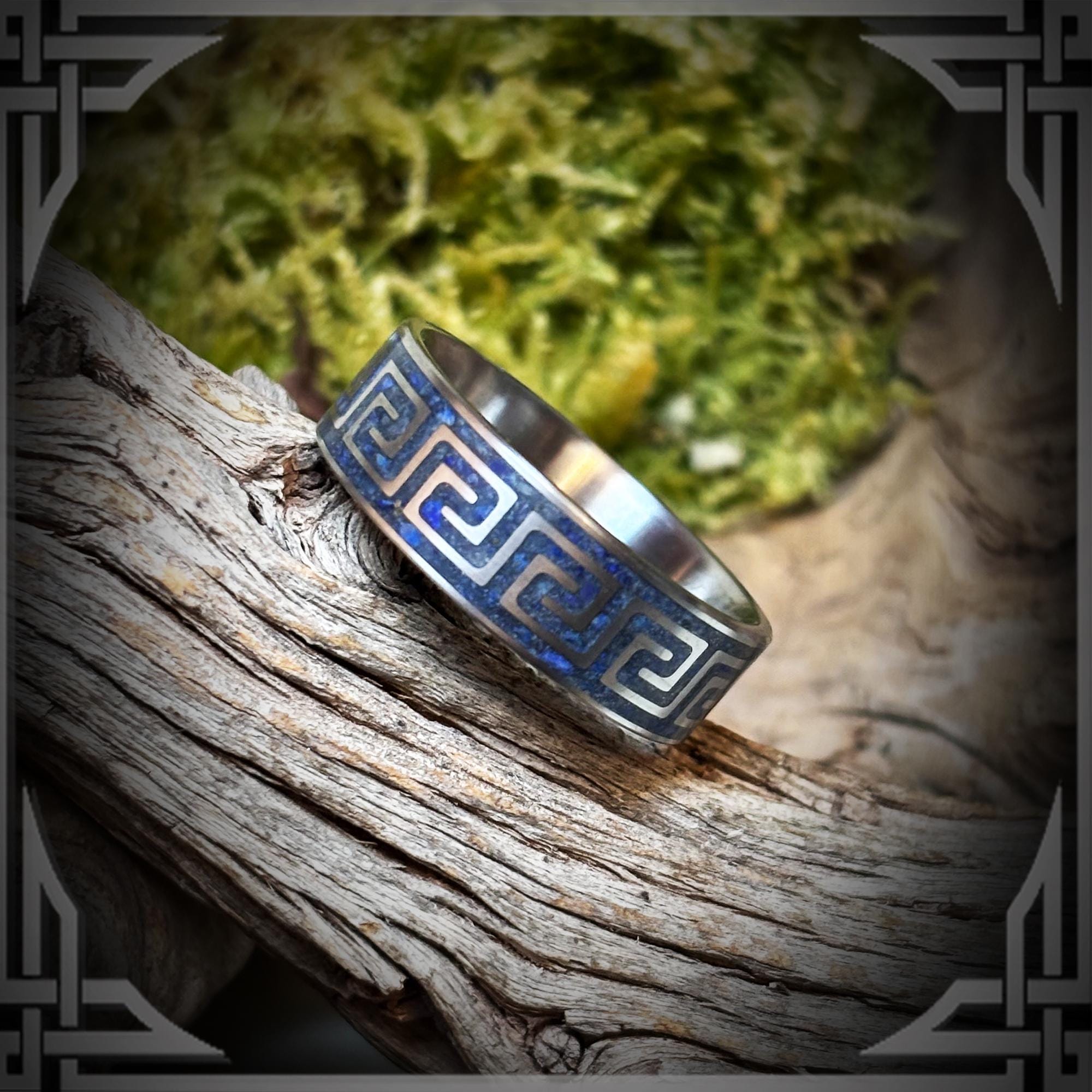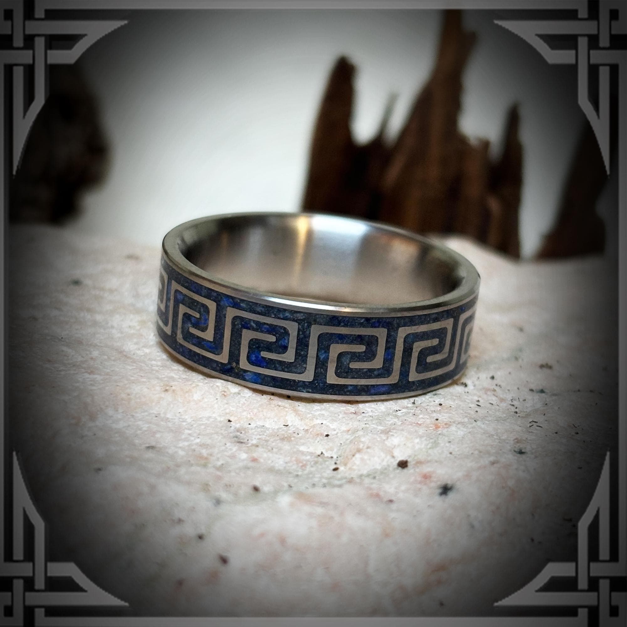 This Titanium Pattern Ring is inlayed with Lapis Lazuli Stone.
