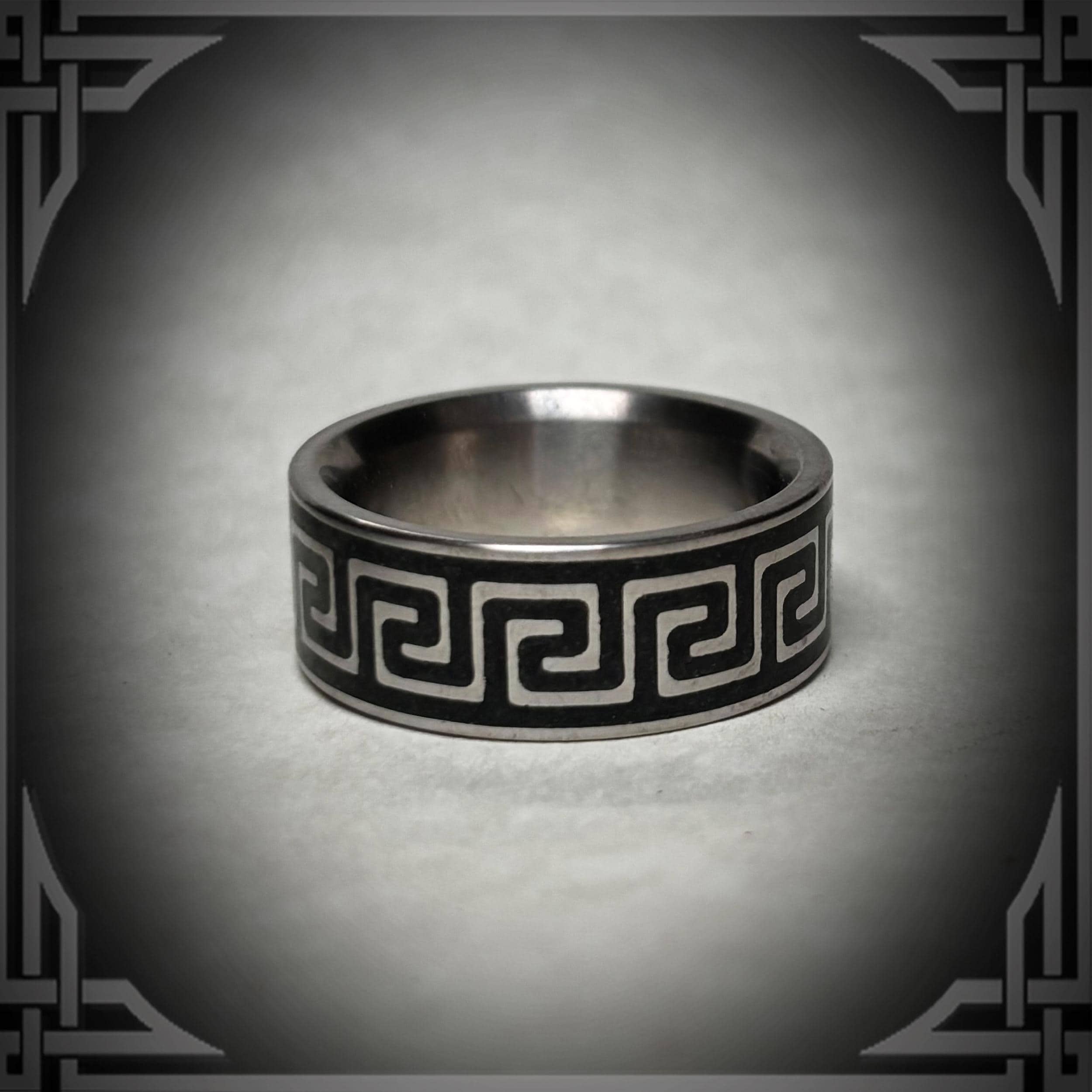 This Titanium Pattern Ring is inlayed with Black Jade Stone.