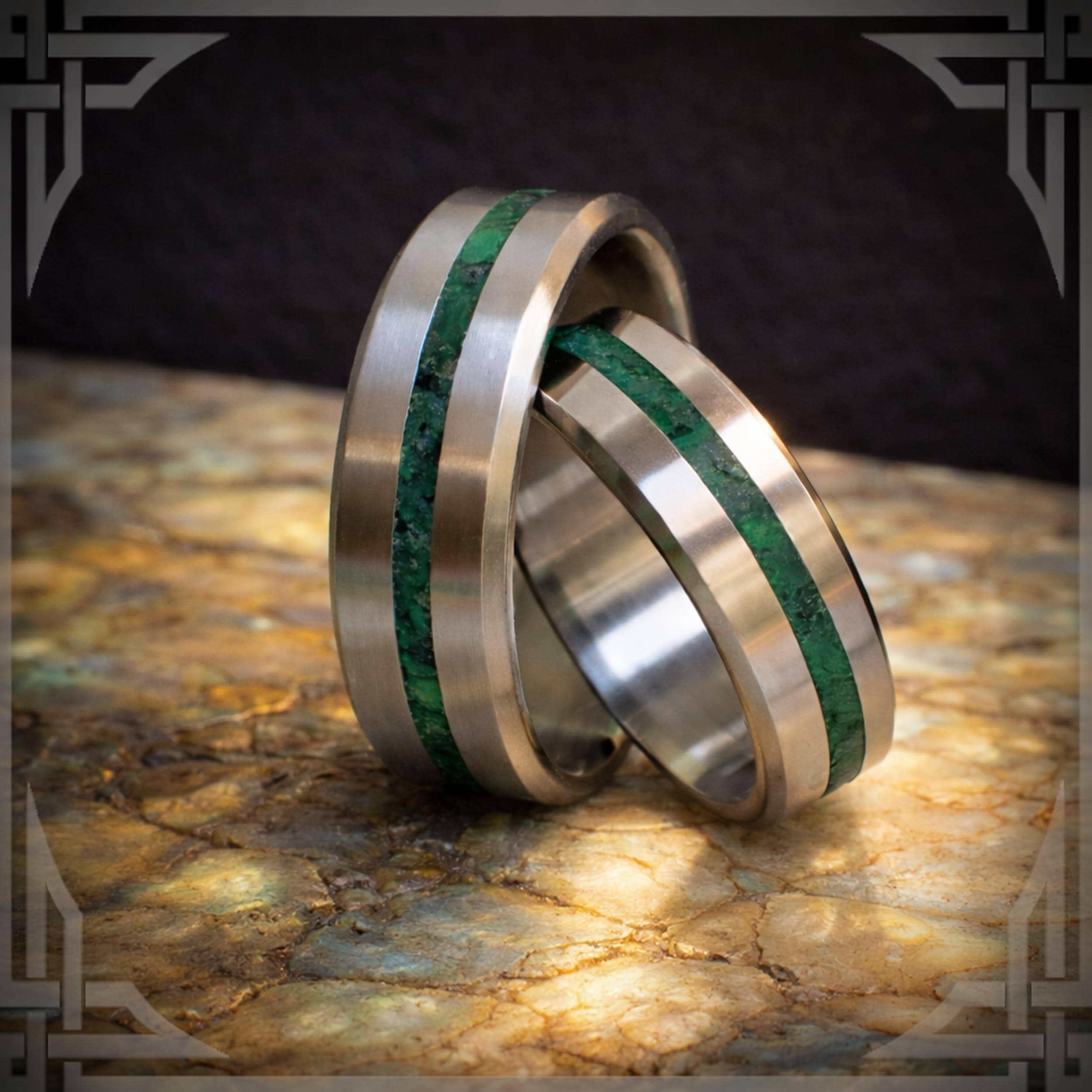 This ring is handmade in Canada from Titanium with a Centered Jade Stone Inlay.