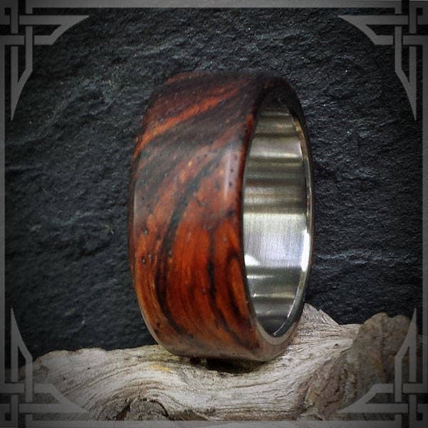 This Ring is made of Cocobolo Hard Wood with a Titanium core.
