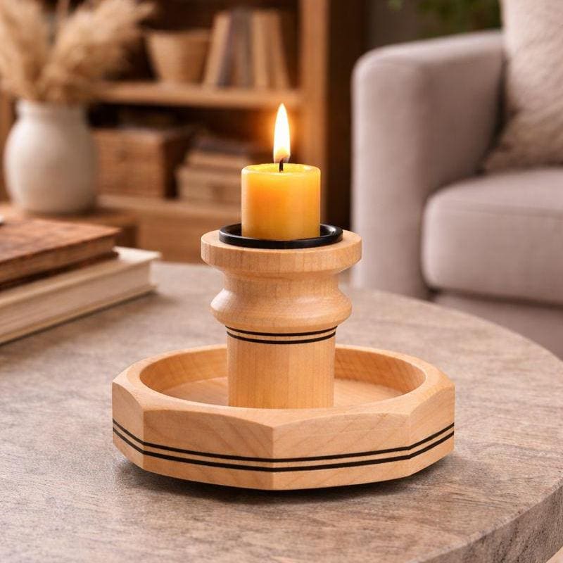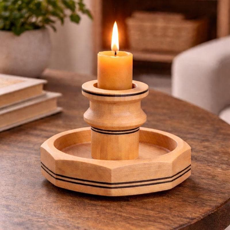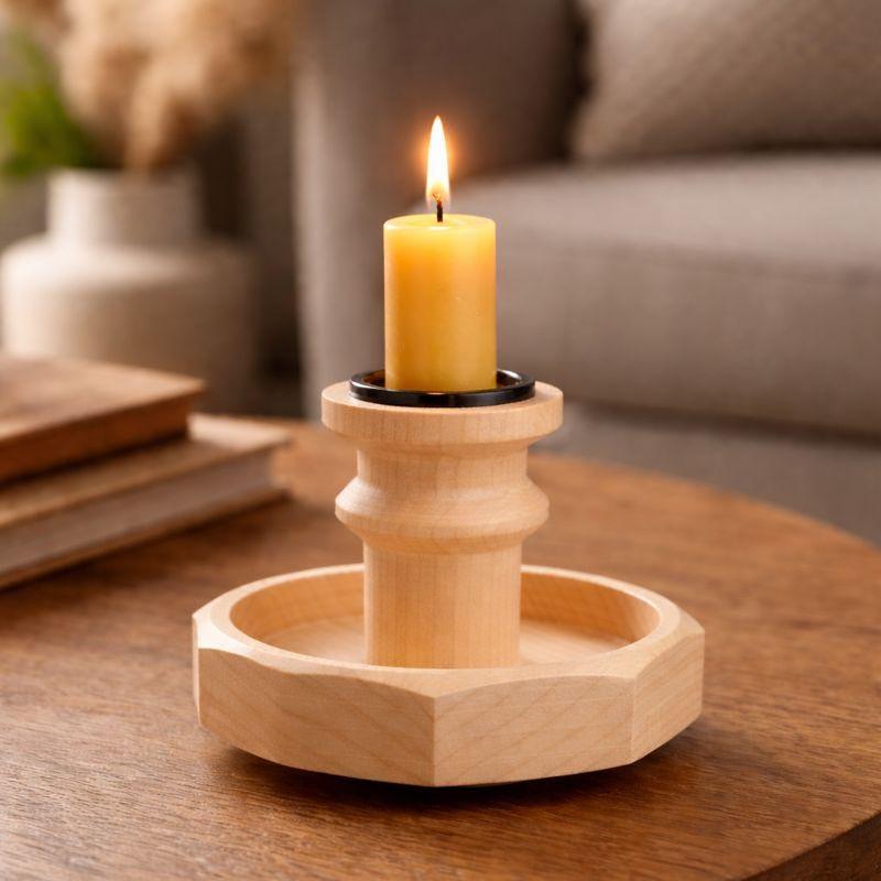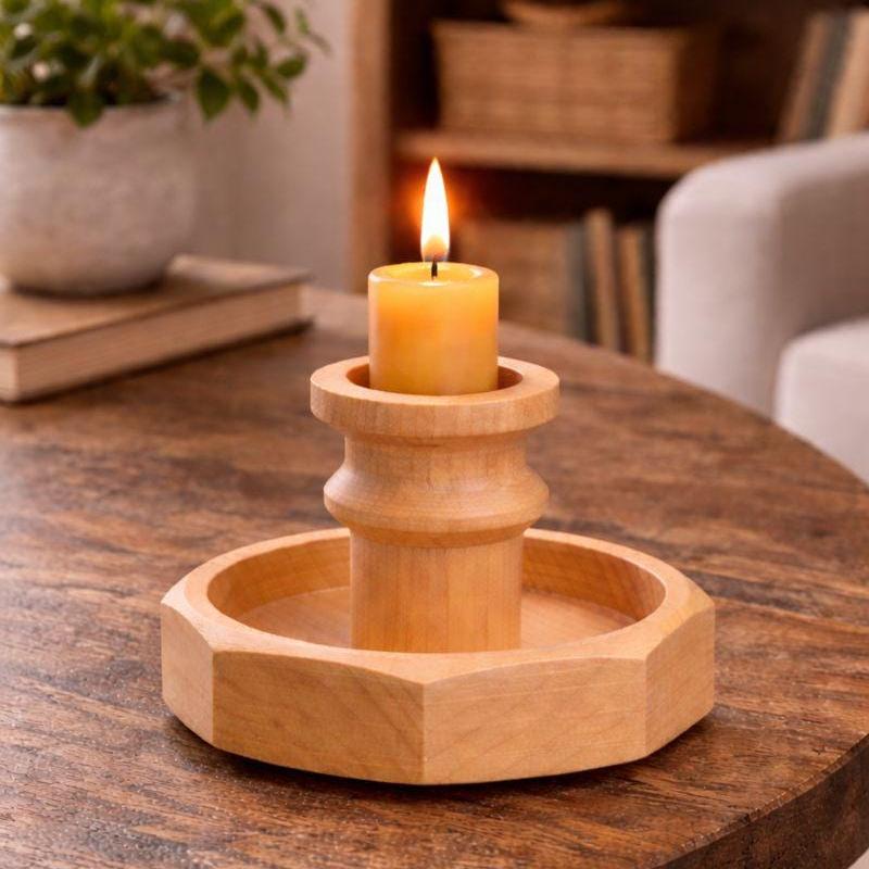 This natural maple wood candle holder evokes an organic, calm, grounded feel.