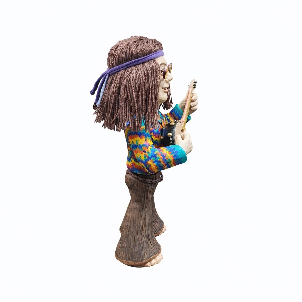 This Hippie Dude figurine is a one-of-a-kind, hand-crafted art piece created by Amanda Fox, owner and artist behind Ancient Works. Every detail is shaped, painted, and finished by hand — no molds, no duplicates, and no shortcuts. Made in Canada