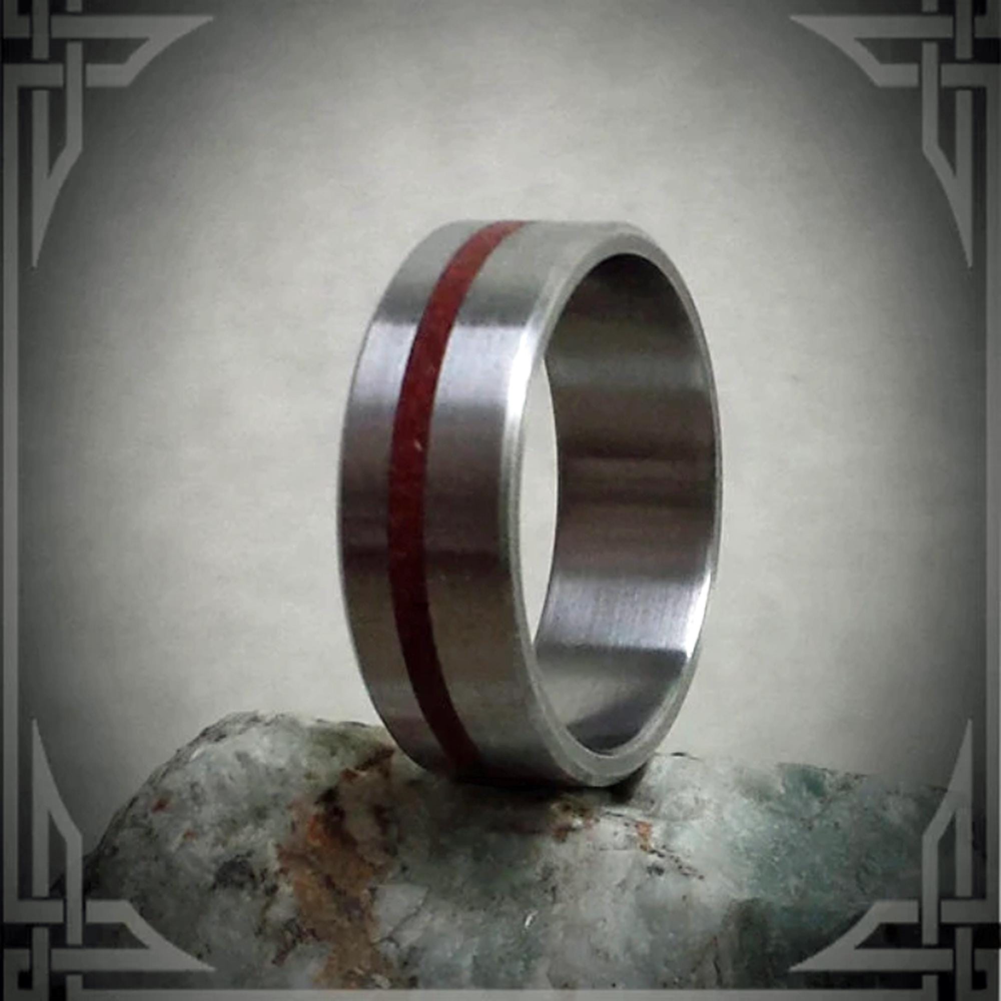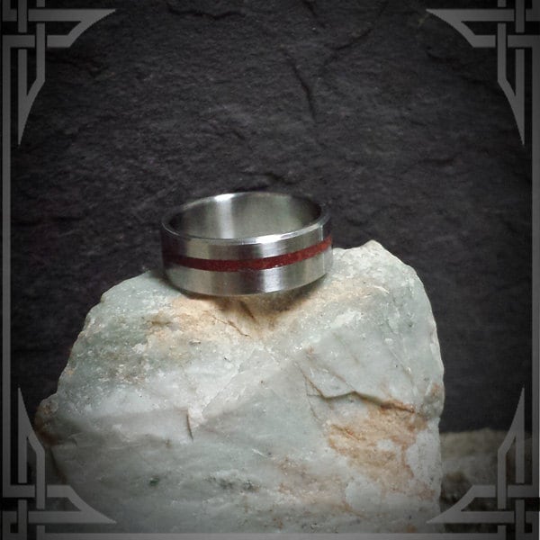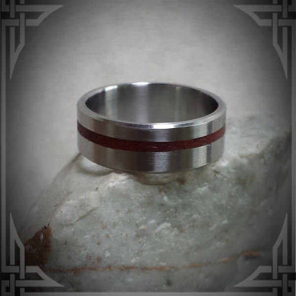This ring is handmade in Canada from Titanium with a beautiful Red Jasper Stone Inlay.