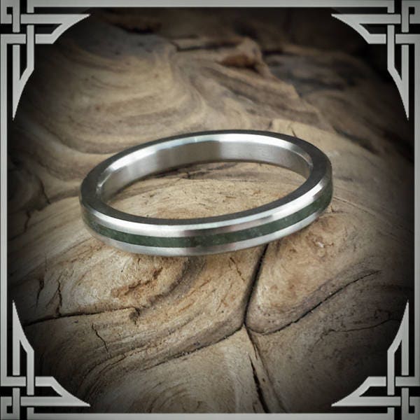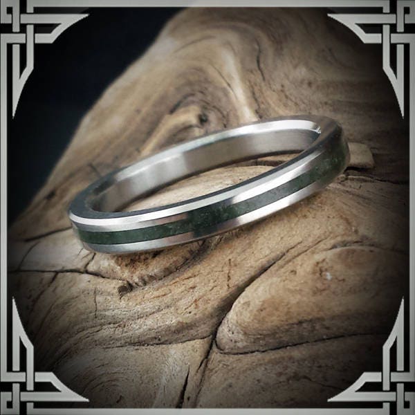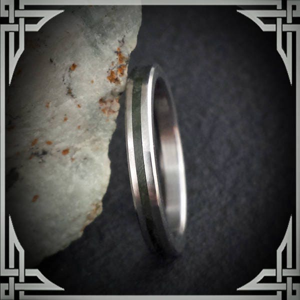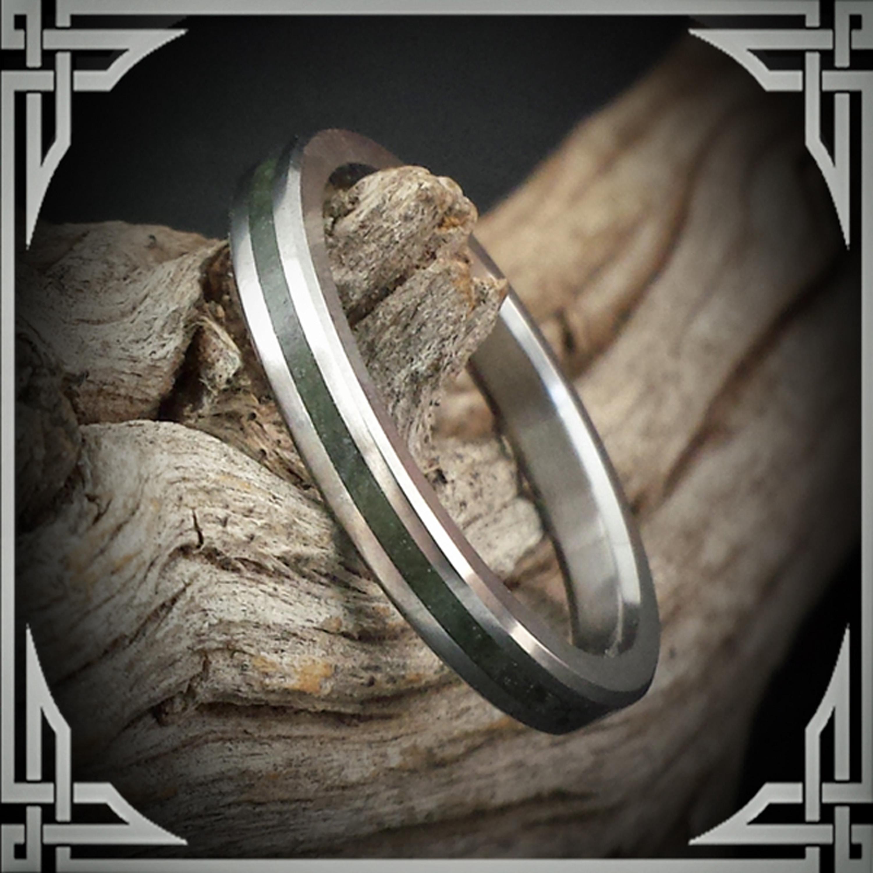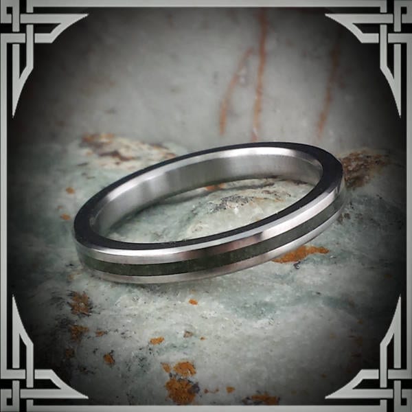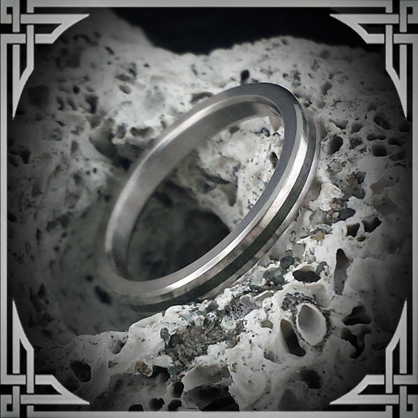 This Beautiful Thin ring is handmade in Canada from Titanium with a Green Jade Stone Inlay.