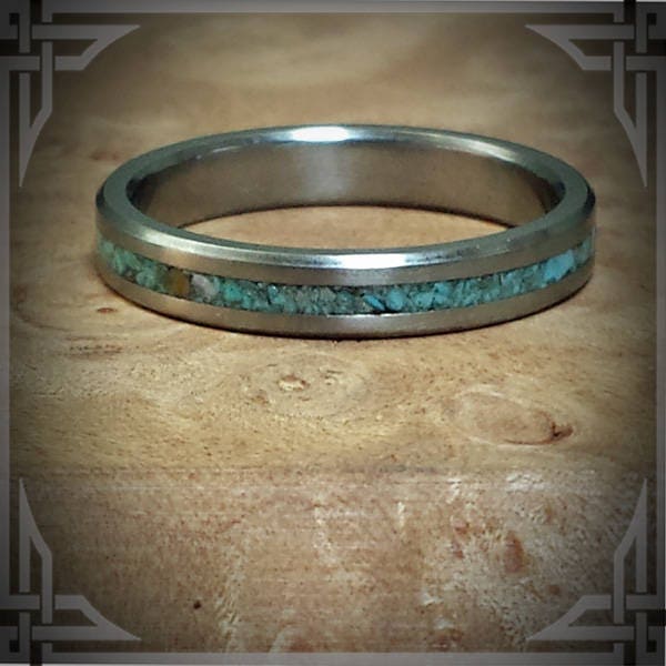 This Beautiful Thin Ring is made from Titanium with a Turquoise Stone Inlay.