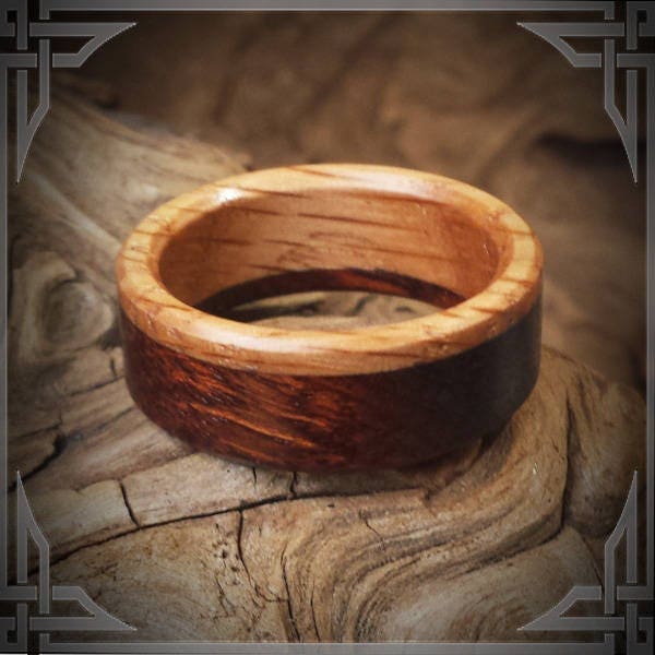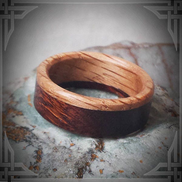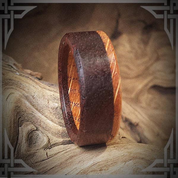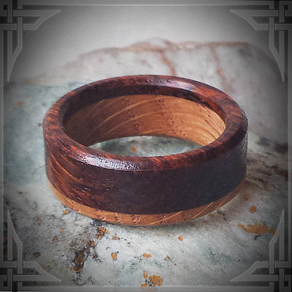 This Ring is handmade from Chechen Wood with an Oak Core.
