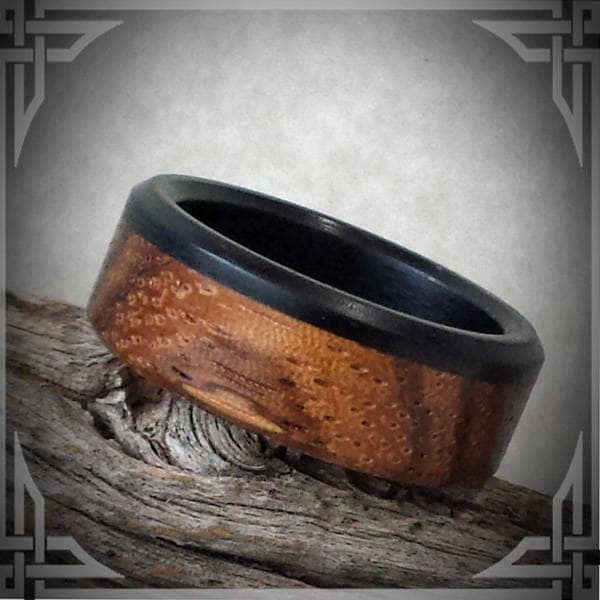 Vacuum stabilized solid wood, (to fully maintain the unique and distinguishing features of each piece of exotic wood). Each ring also has 3 additional coats of crystal clear WATERPROOF *Shield Coat*.