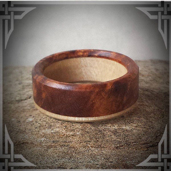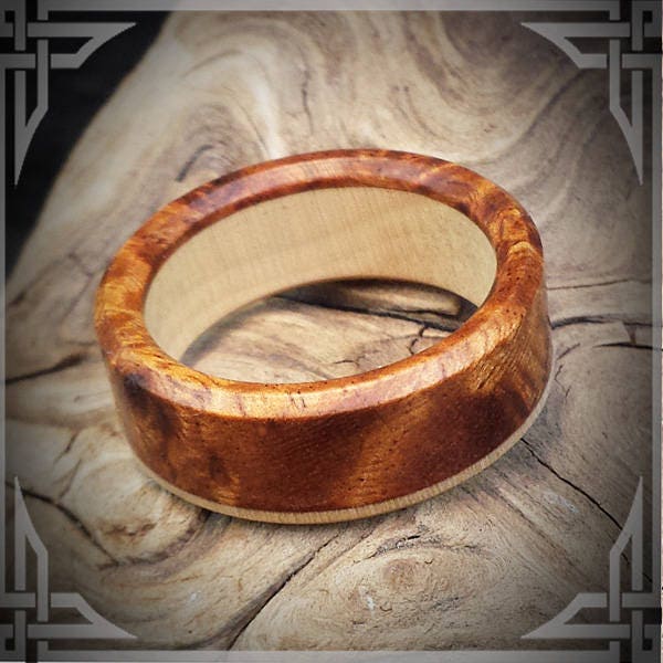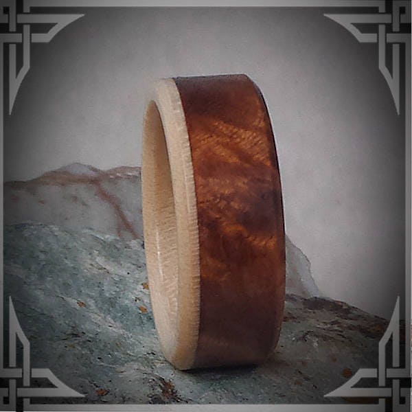 This Ring is handmade from B.C. Maple Burl with a Eastern Maple Core.