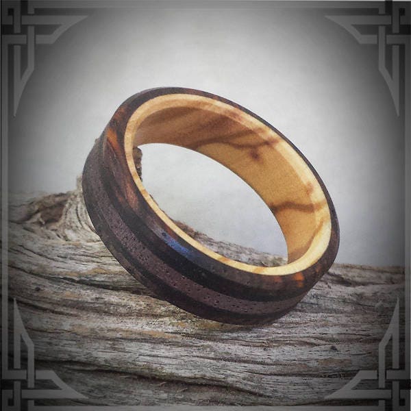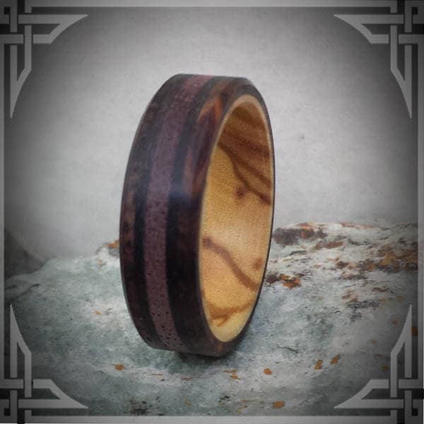 This Ring is made from Cocobolo, Purple Heart and Ebony with a Bethlehem Olive Wood core.