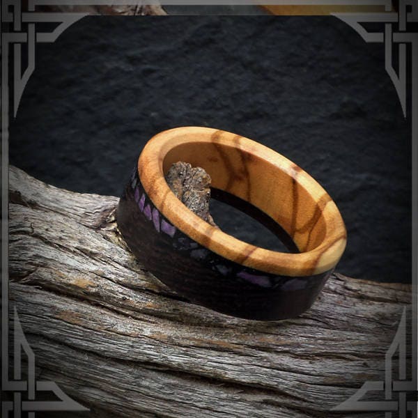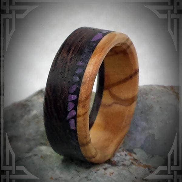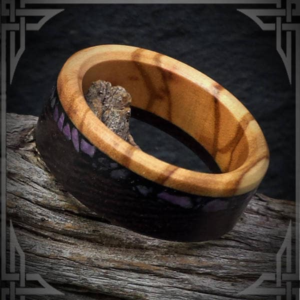 - A carbon fiber reinforced core (between the two woods) makes this ring exceptionally strong
