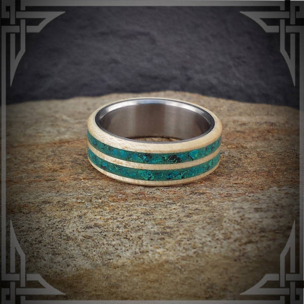 Made with Canadian Maple Wood, a double chrysocolla stone inlay and has a Titanium core.