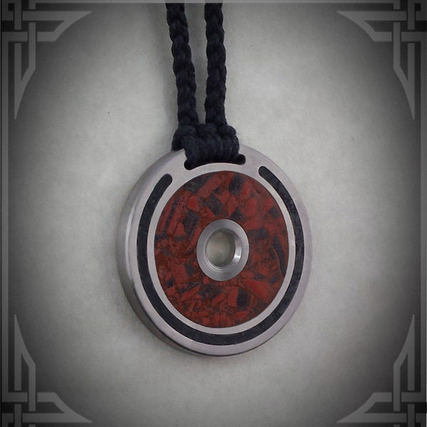 This Necklace is made from Titanium with Iron Banded Jasper and Black Jade Stone Inlay.