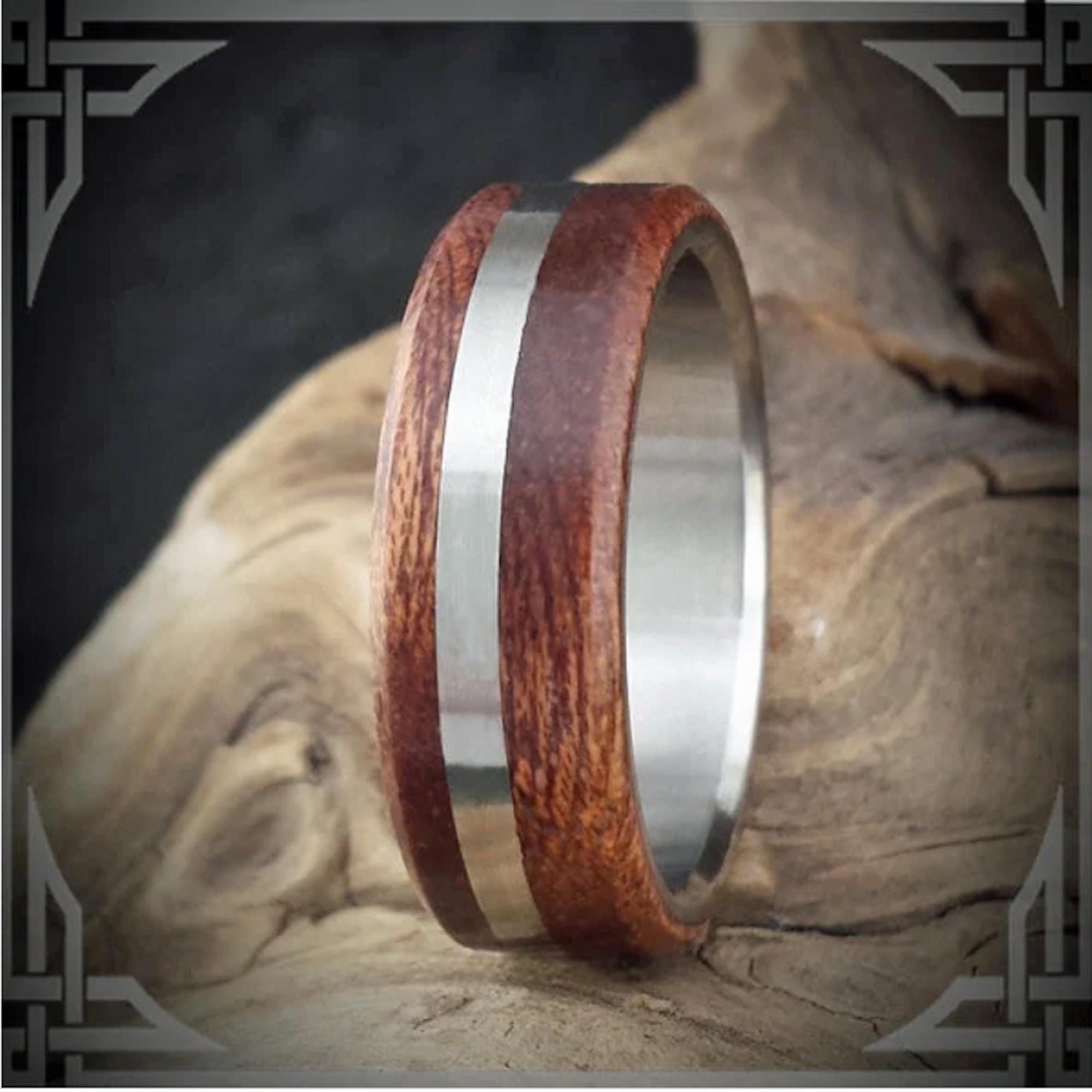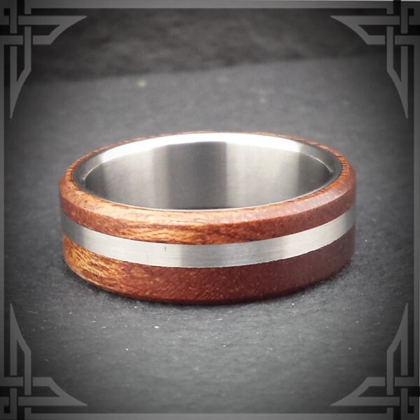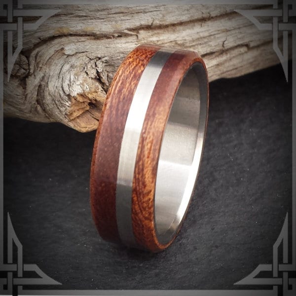 Vacuum stabilized solid wood, (to fully maintain the unique and distinguishing features of each piece of exotic wood). Each ring also has 3 additional coats of crystal clear WATERPROOF *Shield Coat*.
