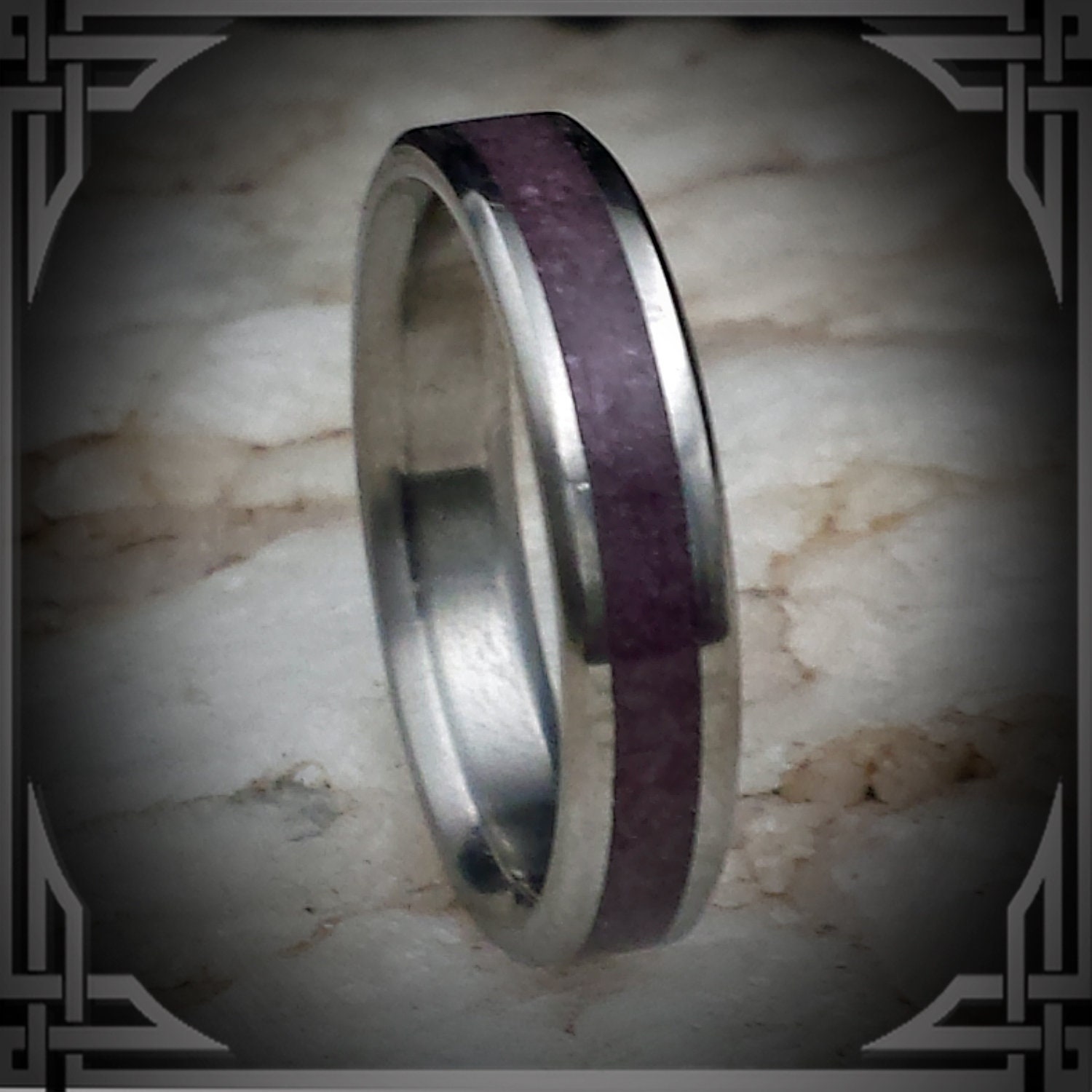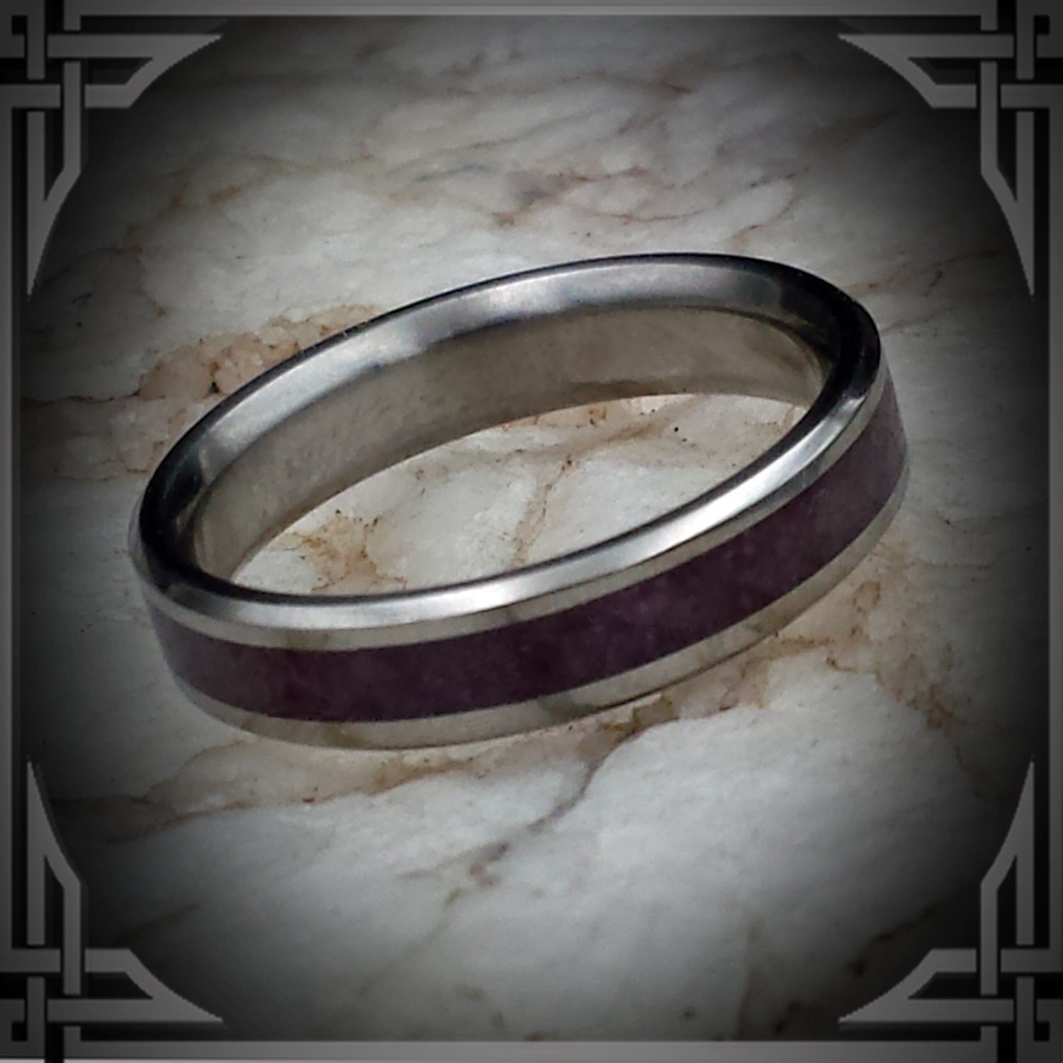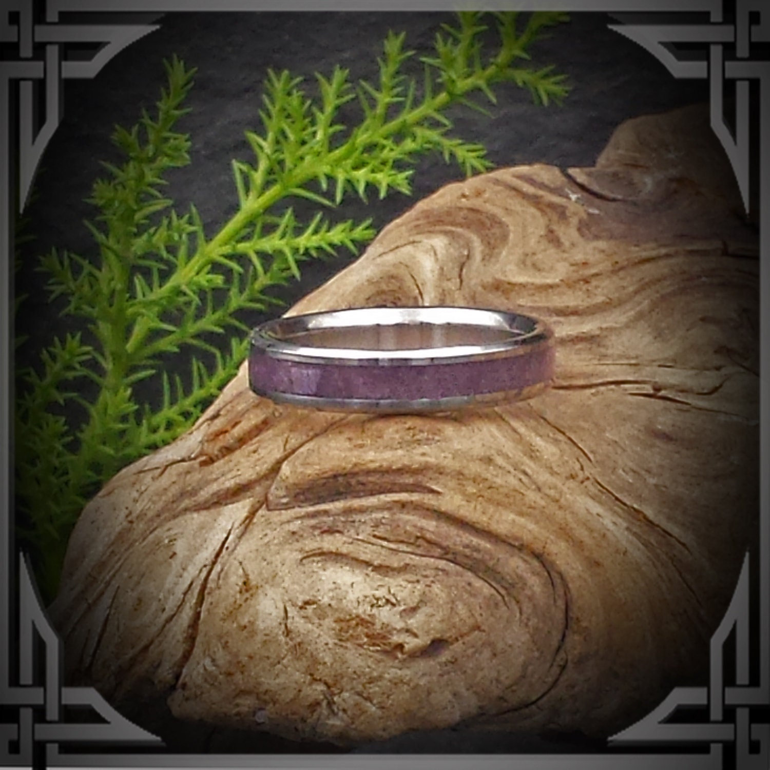 This ring is handmade in Canada from Titanium Ring with a Ruby Wide Groove stone Inlay.