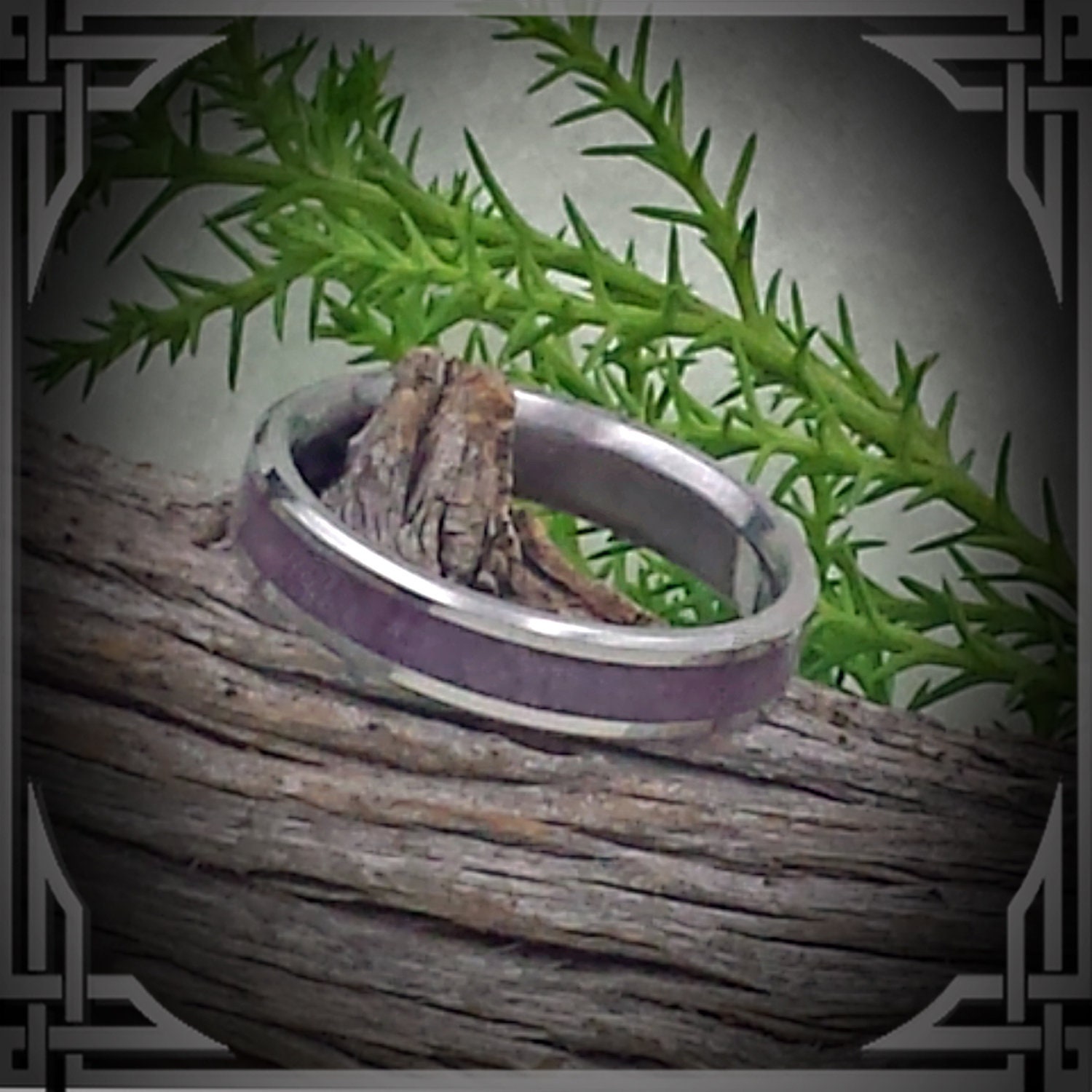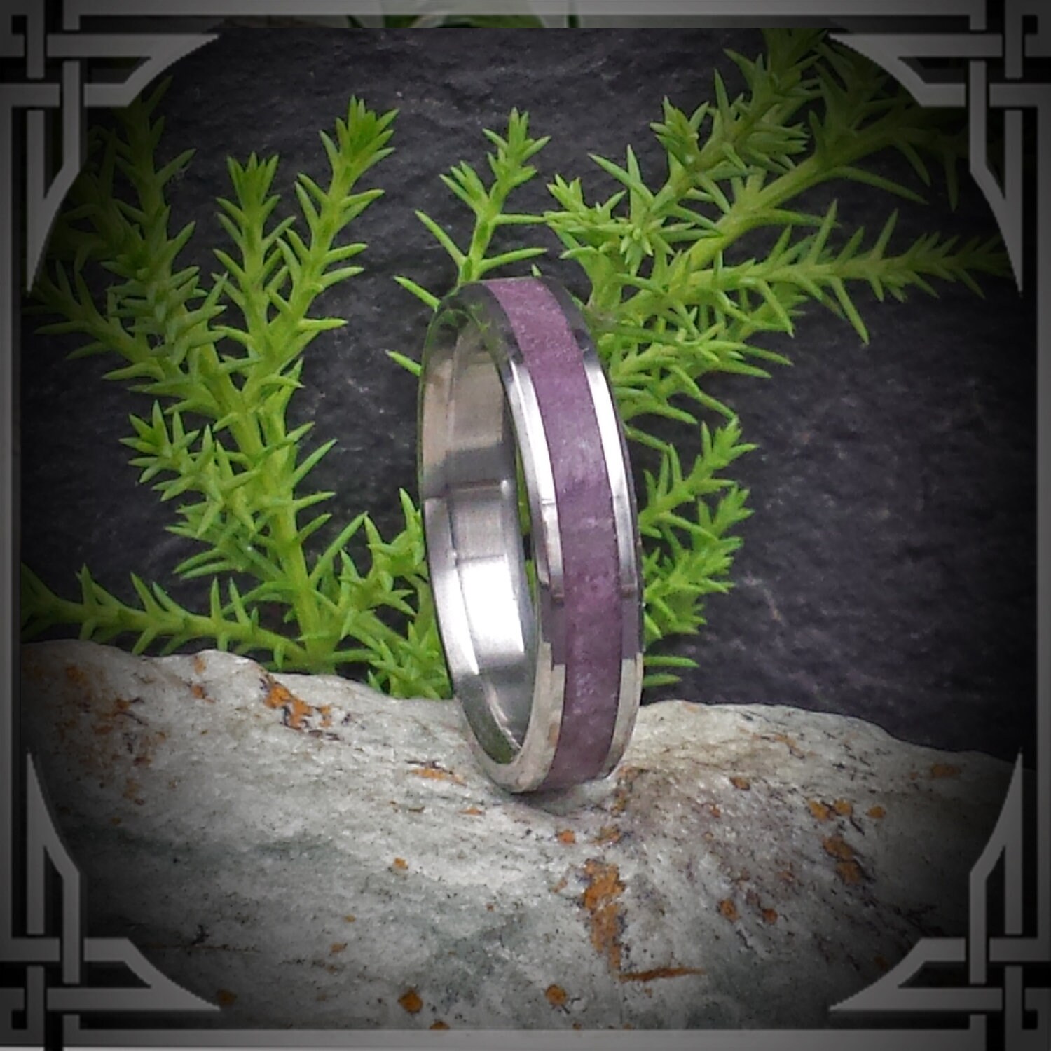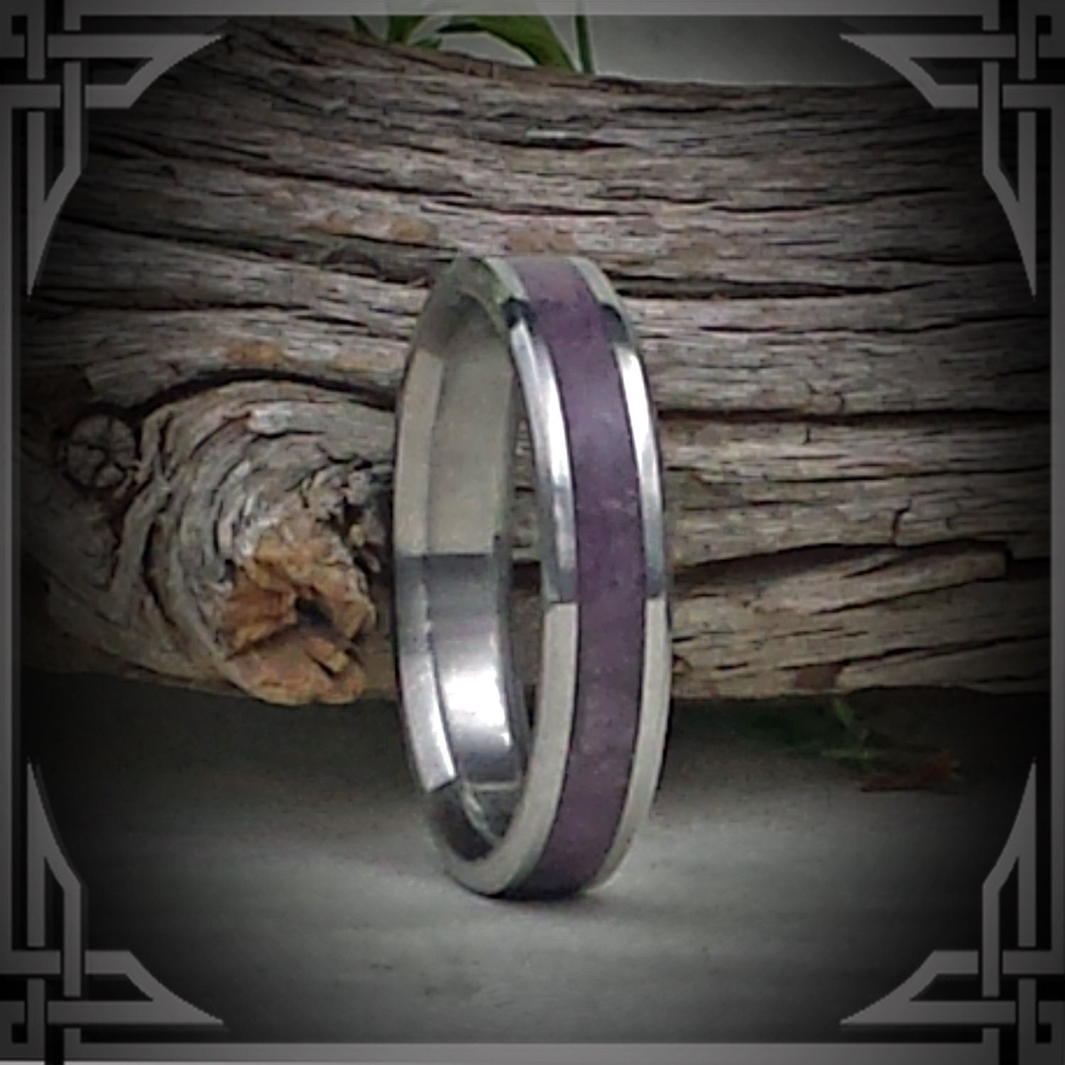 This ring is handmade in Canada from Titanium Ring with a Ruby Wide Groove stone Inlay.