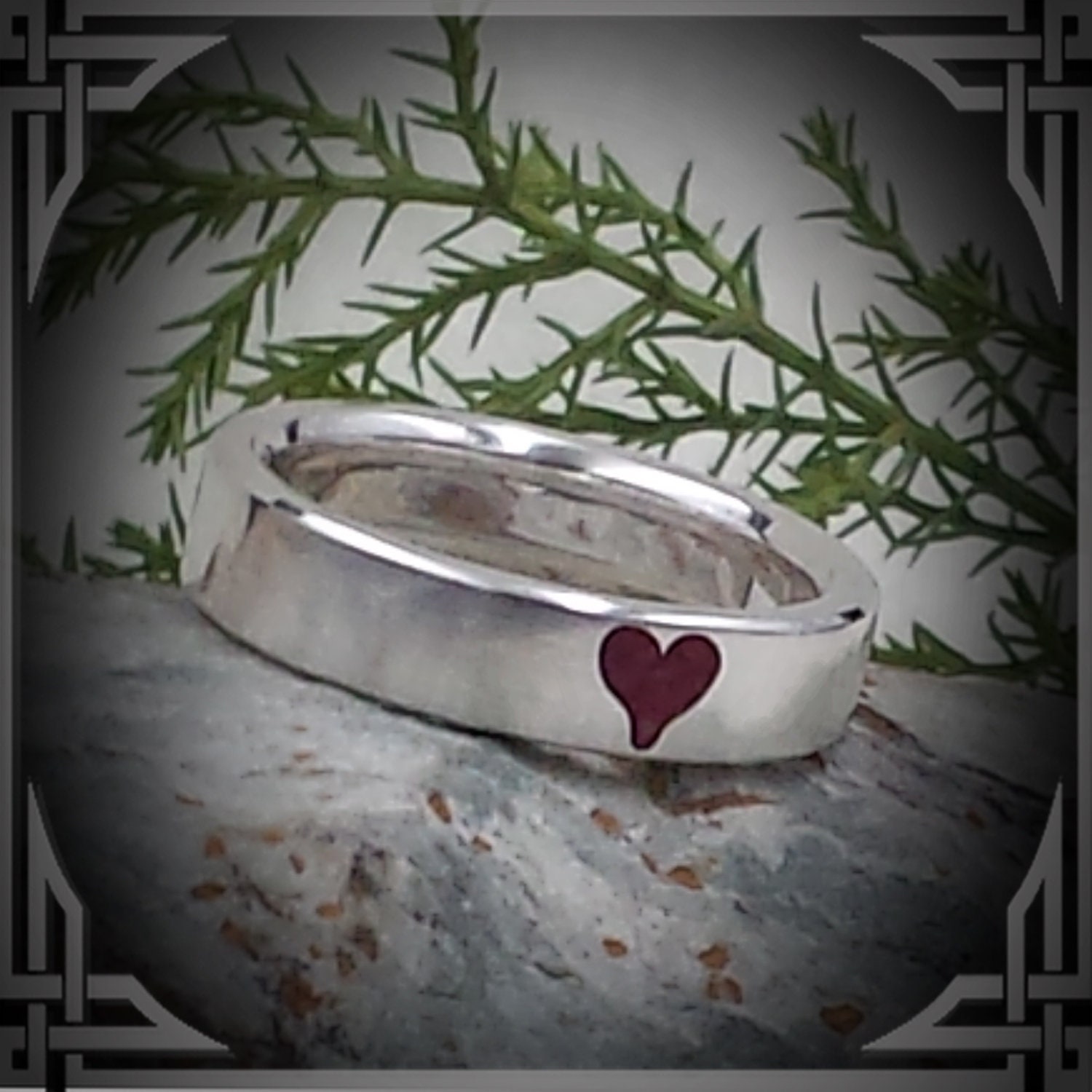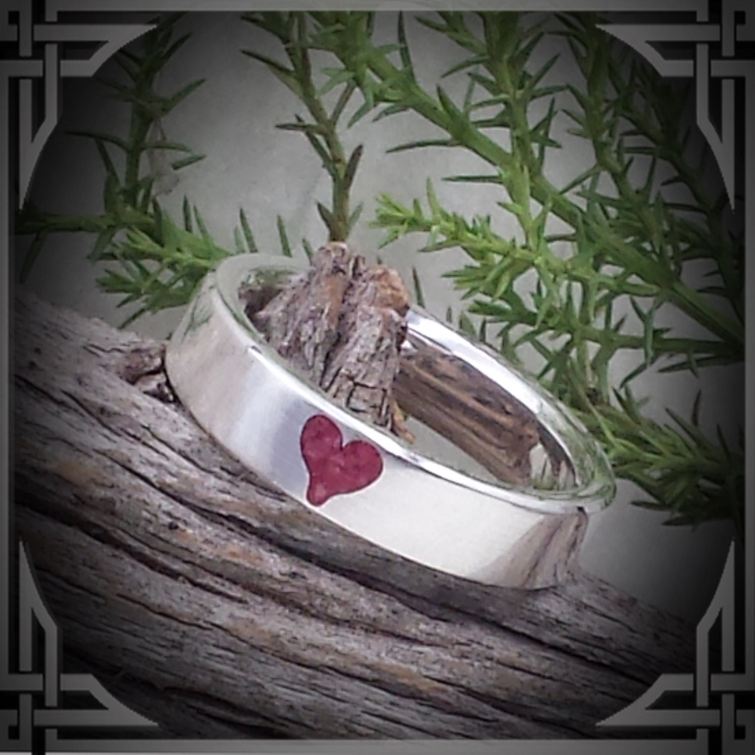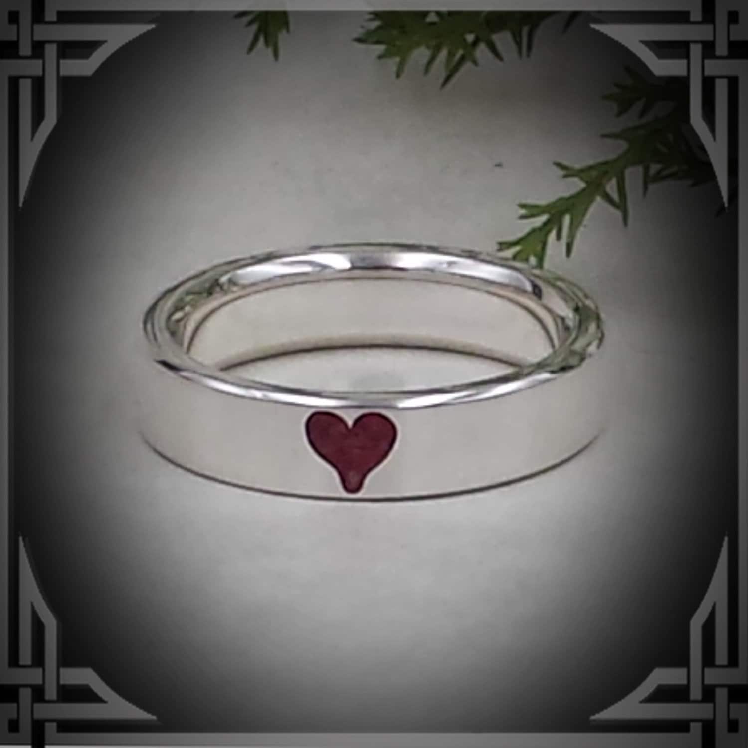 This ring is solid - hand cast by us from 925 Sterling Silver with a Red Coral Heart Stone Inlay.